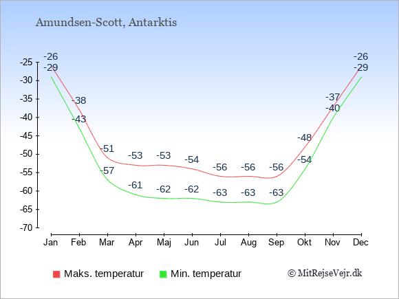 Amundsen-Scott i Antarktisk har ekstremt polarklima lave temperaturer året rundt. Læs mere om vejret året rundt i Antarktis