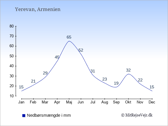 Hvis du vil se, hvordan vejret i Yerevan adskiller sig fra vejret derhjemme, kan du sammenligne tallene måned for måned med de tilsvarende tal for Danmark under Yerevan: klima & vejr.