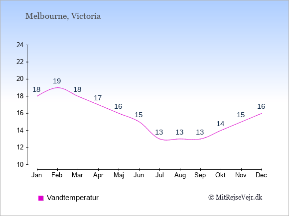 Du kan også se vejrudsigten for Melbourne med den aktuelle vandtemperatur her: Vejrudsigt Melbourne, vejret lige nu.