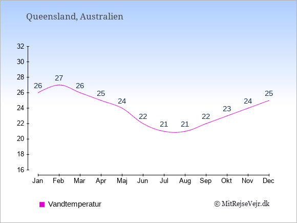 Du kan også se vejrudsigten for Queensland med den aktuelle vandtemperatur her: Vejrudsigt Queensland, vejret lige nu.