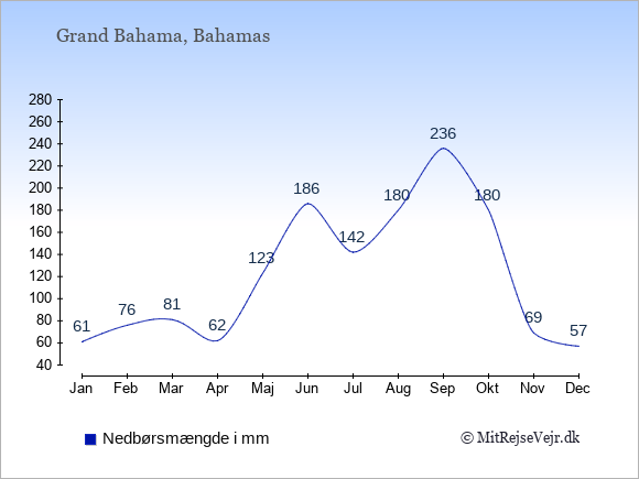 Skal man ud og rejse, har Grand Bahama det bedste klima i de måneder, hvor der er mange solskinstimer og få nedbørsdage.
