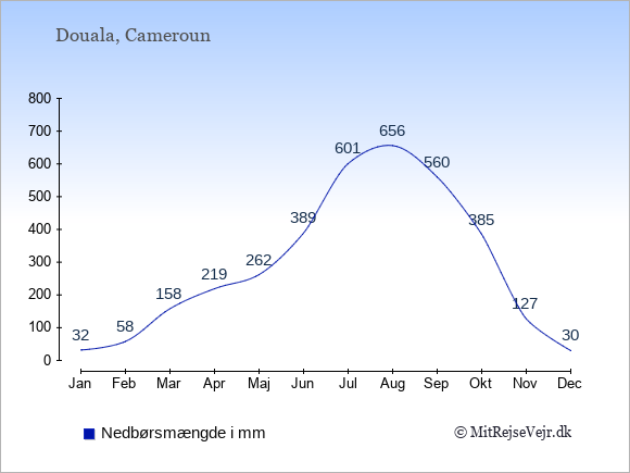 Hvis du vil se, hvordan vejret i Douala adskiller sig fra vejret derhjemme, kan du sammenligne tallene måned for måned med de tilsvarende tal for Danmark under Douala: klima & vejr.