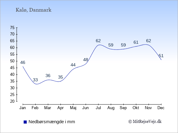 Her på siden kan du få et samlet overblik over det gennemsnitlige klima i Kalø måned for måned sammenlignet med klimaet i København. Oplysningerne om det historiske klima kan du bruge til at planlægge din ferie og finde det bedste tidspunkt at rejse på.