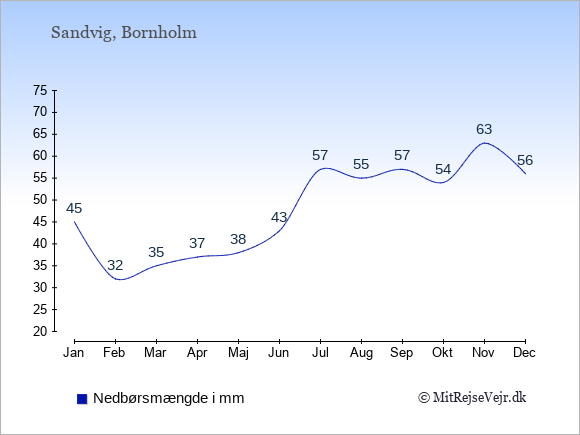 Se også vejret i Sandvig året rundt uden data for København.