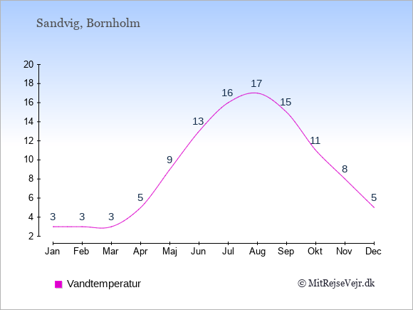 Her på siden kan du få et samlet overblik over det gennemsnitlige klima i Sandvig måned for måned sammenlignet med klimaet i København. Oplysningerne om det historiske klima kan du bruge til at planlægge din ferie og finde det bedste tidspunkt at rejse på.