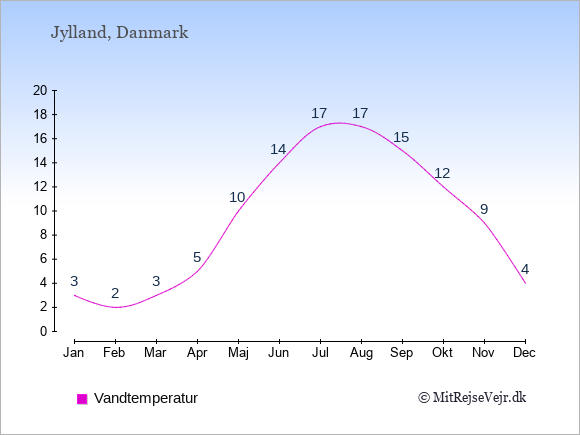 Få et samlet overblik over vejret i Jylland året rundt med temperaturer, vandtemperatur, solskinstimer og nedbør.