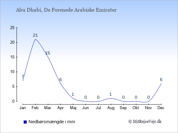 Skal man ud og rejse, har Abu Dhabi det bedste klima i de måneder, hvor der er mange solskinstimer og få nedbørsdage.