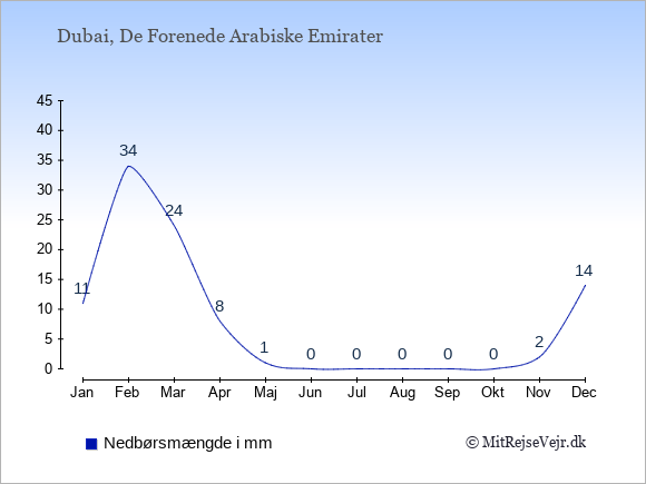 Skal man ud og rejse, har Dubai det bedste klima i de måneder, hvor der er mange solskinstimer og få nedbørsdage.