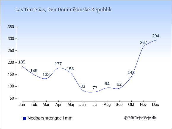 Hvis du vil se, hvordan vejret i Las Terrenas adskiller sig fra vejret derhjemme, kan du sammenligne tallene måned for måned med de tilsvarende tal for Danmark under Las Terrenas: klima & vejr.