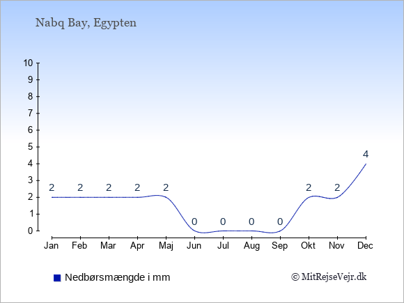 Skal man ud og rejse, har Nabq Bay det bedste klima i de måneder, hvor der er mange solskinstimer og få nedbørsdage.