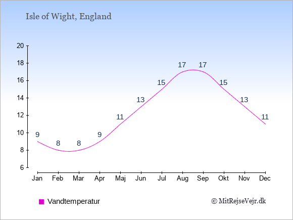 Du kan også se vejrudsigten for Isle of Wight med den aktuelle vandtemperatur her: Vejrudsigt Isle of Wight, vejret lige nu.