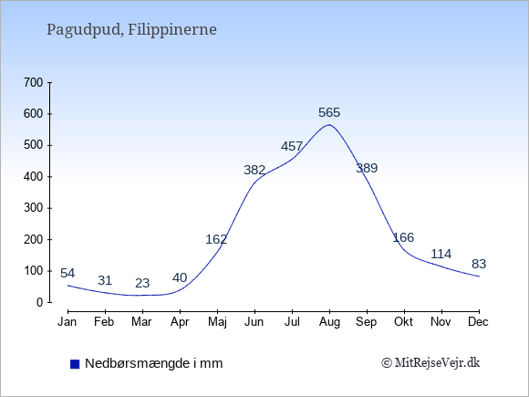 Se klimadata for Pagudpud sammenlignet med klimaet i Danmark.