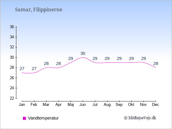 Har du brug for at vide, hvordan vejret bliver de kommende dage, kan du se vejrudsigten for Samar med den aktuelle vandtemperatur her: Vejrudsigt Samar.