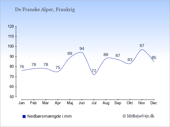 Klimadata for De Franske Alper, Frankrig