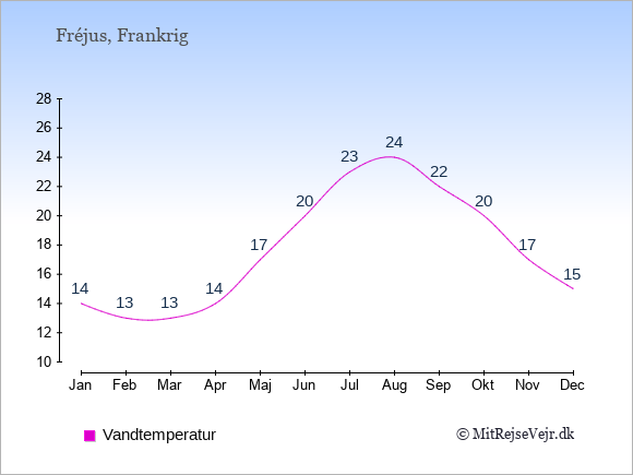 Se også vejret i Fréjus året rundt uden data for København.