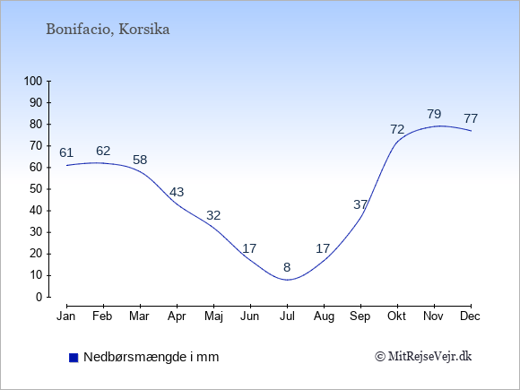 Hvis du vil se, hvordan vejret i Bonifacio adskiller sig fra vejret derhjemme, kan du sammenligne tallene måned for måned med de tilsvarende tal for Danmark under Bonifacio: klima & vejr.