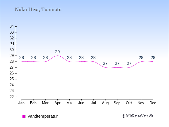 Se klimadata for Nuku Hiva sammenlignet med klimaet i Danmark.