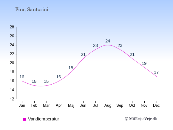 Du kan også se vejrudsigten for Fira med den aktuelle vandtemperatur her: Vejrudsigt Fira, vejret lige nu.