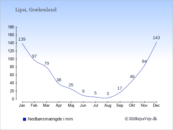 Hvis du vil se, hvordan vejret på Lipsi adskiller sig fra vejret derhjemme, kan du sammenligne tallene måned for måned med de tilsvarende tal for Danmark under Lipsi: klima & vejr.