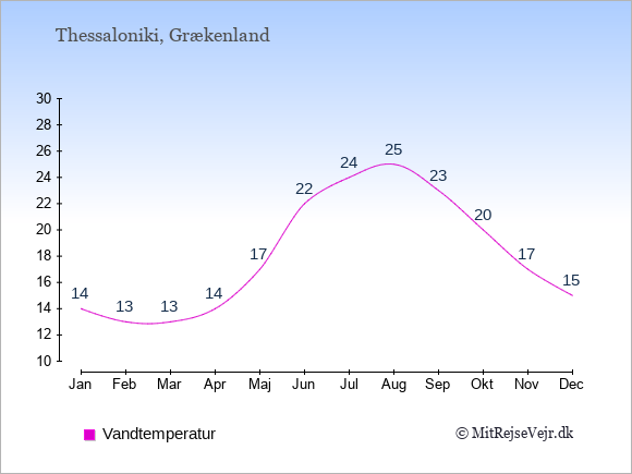Du kan også se vejrudsigten for Thessaloniki med den aktuelle vandtemperatur her: Vejrudsigt Thessaloniki, vejret lige nu.