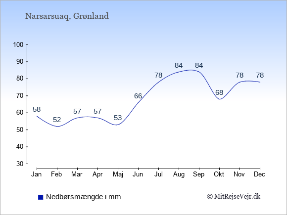 Hvis du vil se, hvordan vejret i Narsarsuaq adskiller sig fra vejret derhjemme, kan du sammenligne tallene måned for måned med de tilsvarende tal for Danmark under Narsarsuaq: klima & vejr.