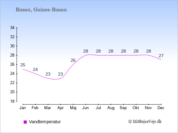 Se også vejret i Bissau året rundt uden data for København.