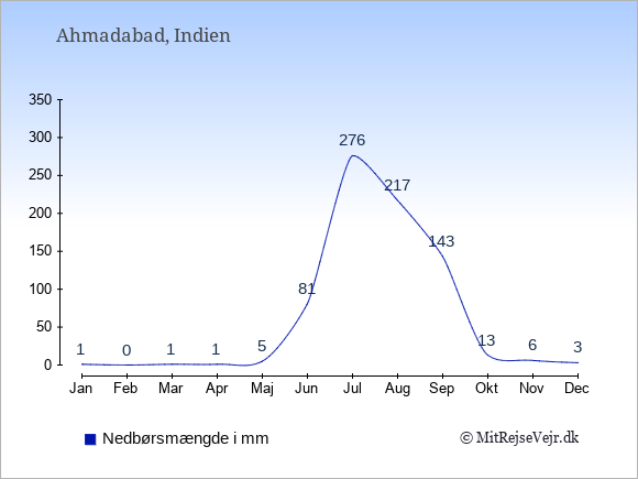 Se klimadata for Ahmadabad sammenlignet med klimaet i Danmark.