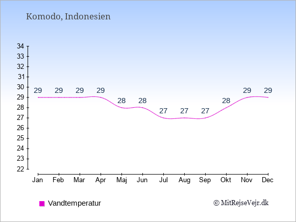 Se klimadata for Komodo sammenlignet med klimaet i Danmark.