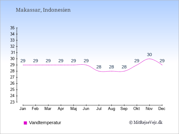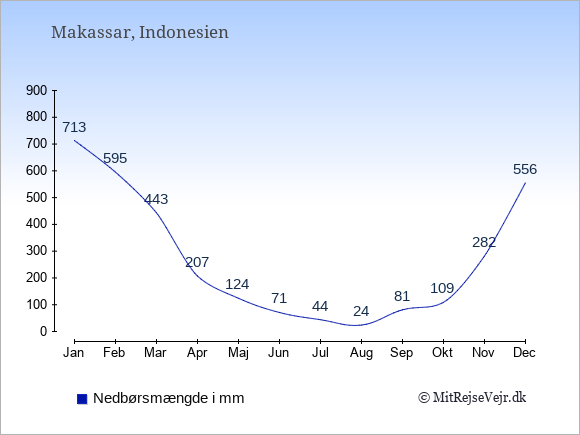 Se klimadata for Makassar sammenlignet med klimaet i Danmark.