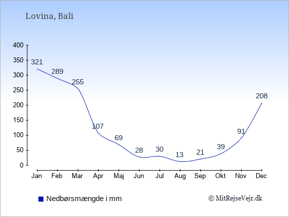 Hvis du vil se, hvordan vejret i Lovina adskiller sig fra vejret derhjemme, kan du sammenligne tallene måned for måned med de tilsvarende tal for Danmark under Lovina: klima & vejr.