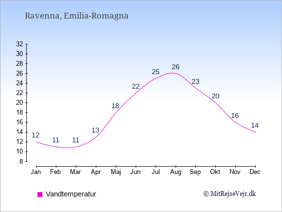 Har du brug for at vide, hvordan vejret bliver de kommende dage, kan du se vejrudsigten for Ravenna med den aktuelle vandtemperatur her: Vejrudsigt Ravenna.