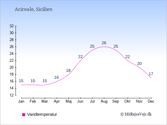 Du kan også se vejrudsigten for Acireale med den aktuelle vandtemperatur her: Vejrudsigt Acireale, vejret lige nu.