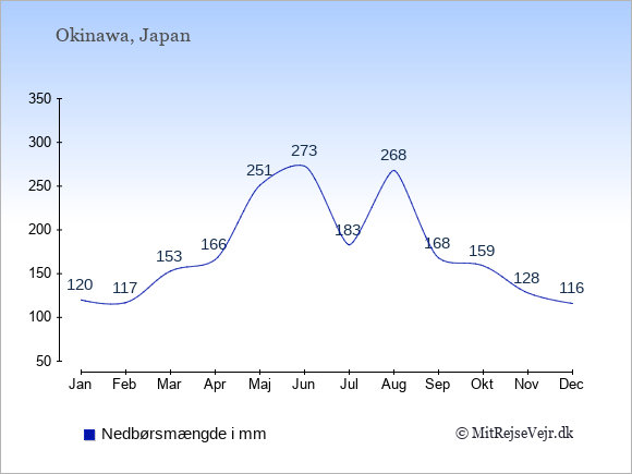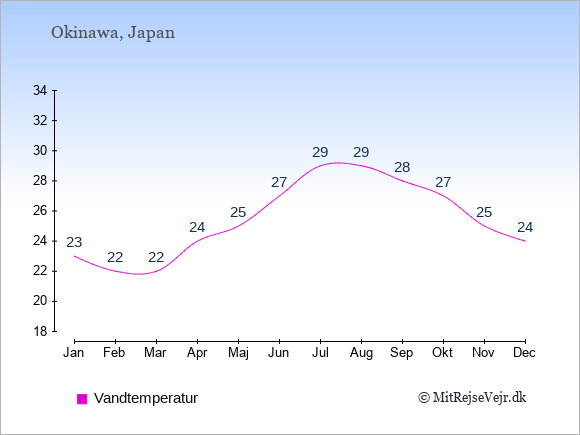 Se klimadata for Okinawa sammenlignet med klimaet i Danmark.