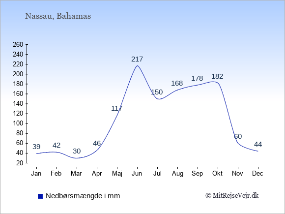 Skal man ud og rejse, har Nassau det bedste klima i de måneder, hvor der er mange solskinstimer og få nedbørsdage.