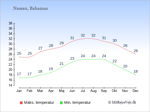 Se også vejret på Bahamas året rundt uden data for København.