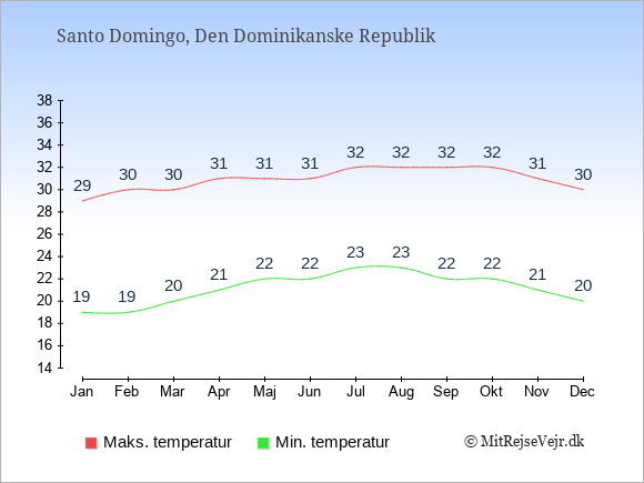 Se også vejret i Den Dominikanske Republik året rundt uden data for København.