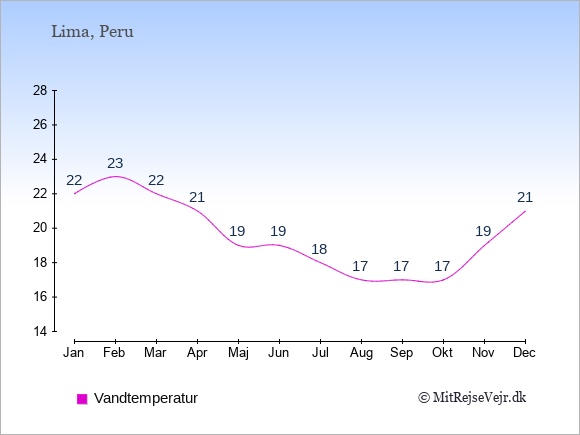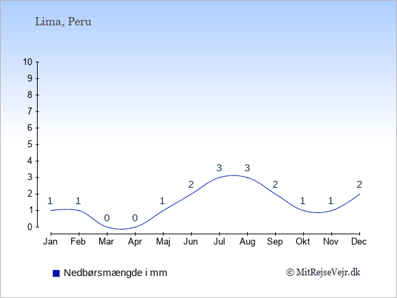 Skal man ud og rejse, har Lima det bedste klima i de måneder, hvor der er mange solskinstimer og få nedbørsdage.
