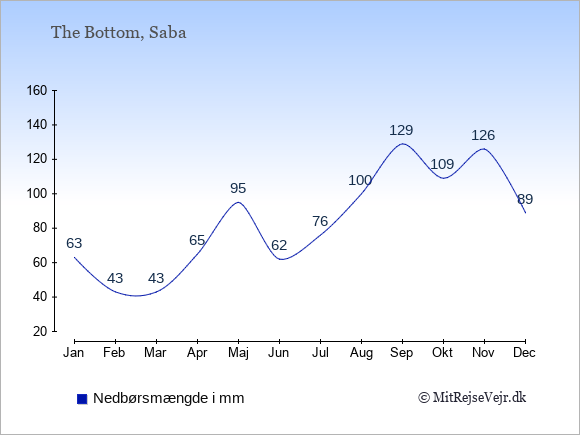 Se klimadata for Saba sammenlignet med klimaet i Danmark.