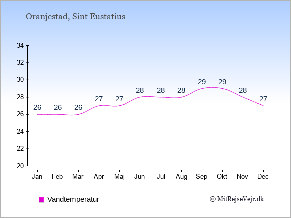 Se klimadata for Sint Eustatius sammenlignet med klimaet i Danmark.