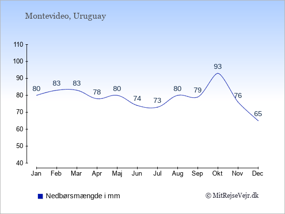 Se også vejret i Uruguay året rundt uden data for København.