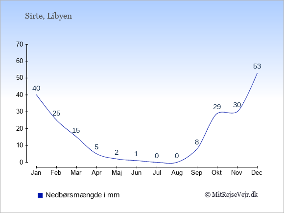 Skal man ud og rejse, har Sirte det bedste klima i de måneder, hvor der er mange solskinstimer og få nedbørsdage.