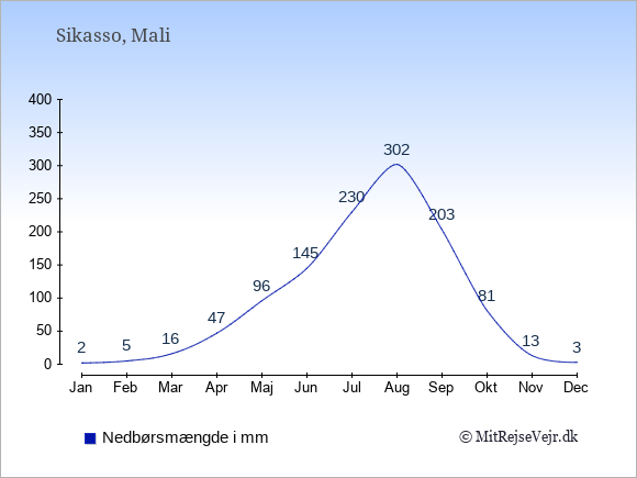 Hvis du vil se, hvordan vejret i Sikasso adskiller sig fra vejret derhjemme, kan du sammenligne tallene måned for måned med de tilsvarende tal for Danmark under Sikasso: klima & vejr.