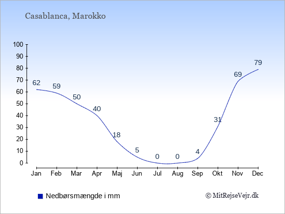 Skal man ud og rejse, har Casablanca det bedste klima i de måneder, hvor der er mange solskinstimer og få nedbørsdage.