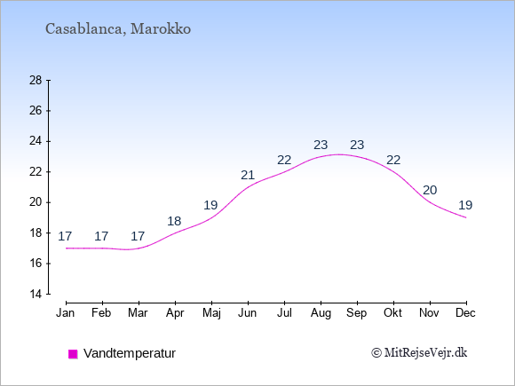 Har du brug for at vide, hvordan vejret bliver de kommende dage, kan du se vejrudsigten for Casablanca med den aktuelle vandtemperatur her: Vejrudsigt Casablanca.