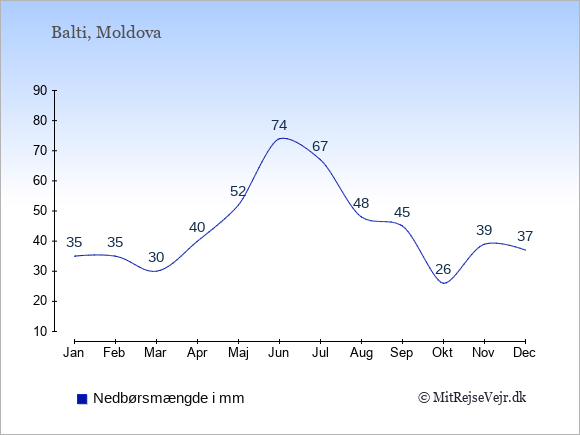 Hvis du vil se, hvordan vejret i Balti adskiller sig fra vejret derhjemme, kan du sammenligne tallene måned for måned med de tilsvarende tal for Danmark under Balti: klima & vejr.