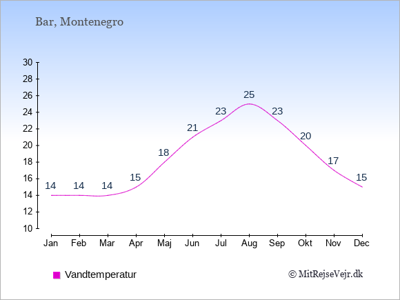 Du kan også se vejrudsigten for Bar med den aktuelle vandtemperatur her: Vejrudsigt Bar, vejret lige nu.