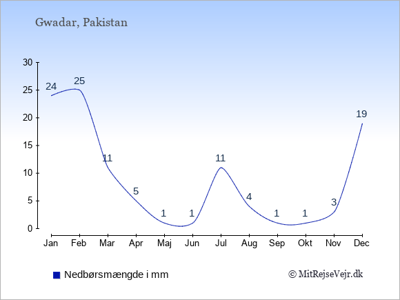 Hvis du vil se, hvordan vejret i Gwadar adskiller sig fra vejret derhjemme, kan du sammenligne tallene måned for måned med de tilsvarende tal for Danmark under Gwadar: klima & vejr.