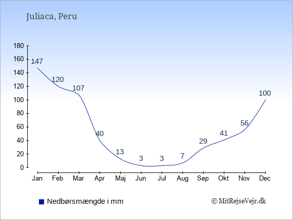 Vejret i Juliaca: Solskinstimer og nedbørsdage