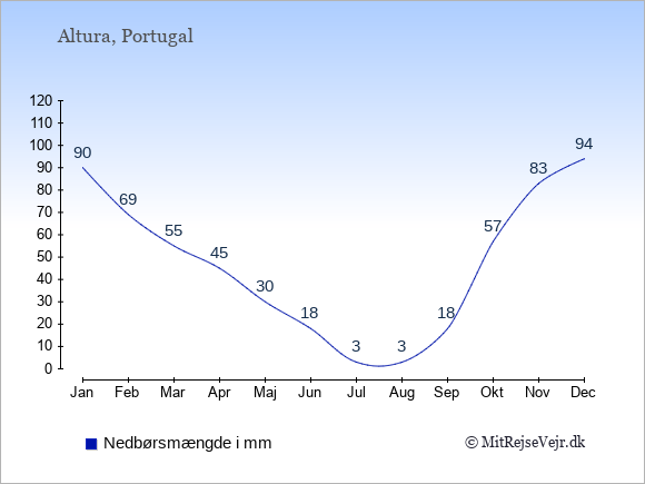 Hvis du vil se, hvordan vejret i Altura adskiller sig fra vejret derhjemme, kan du sammenligne tallene måned for måned med de tilsvarende tal for Danmark under Altura: klima & vejr.