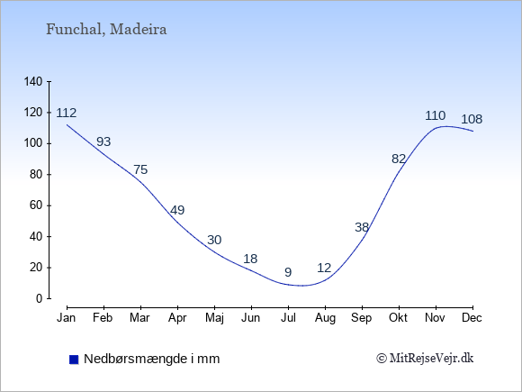 Vejret i Funchal er som regel bedst i de måneder, hvor der er mange solskinstimer og få nedbørsdage.